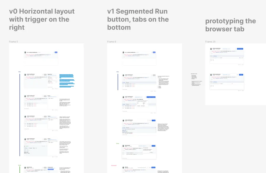 For our team, redesigning a new and improved Val Editor UI means tinkering around with Figma mockups and chatting about pros & cons in the office. But everything with Val Town we do with everyone. Open channels, working in public, and getting ideas out fresh and early.